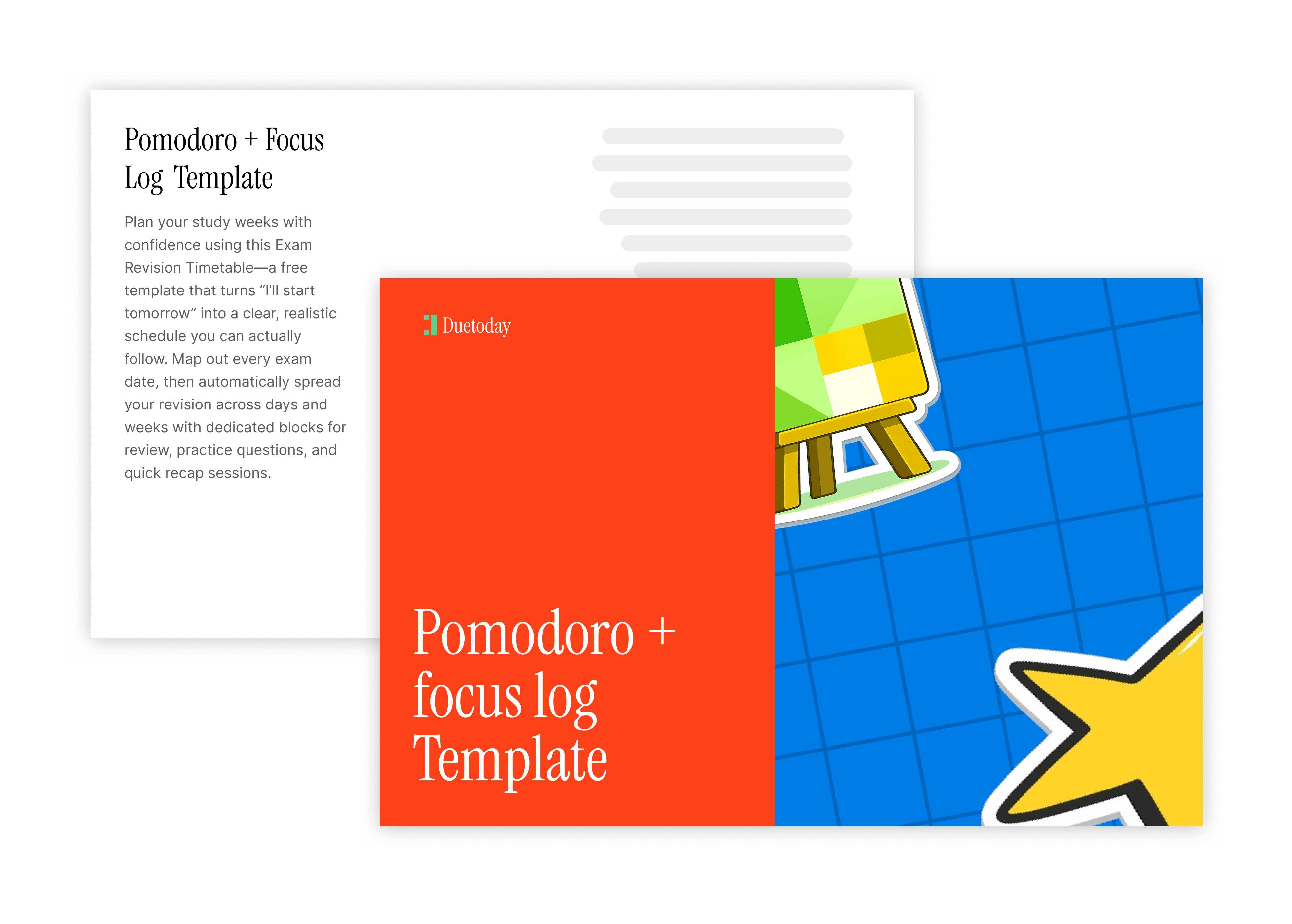 While the Pomodoro + Focus Log keeps you on track, Duetoday AI ensures your study materials are ready for deep work. Duetoday AI transcribes lectures in real-time, translates instantly, and turns recordings, PDFs, and videos into clean notes, summaries, flashcards, and quizzes. Instead of spending your Pomodoro sessions frantically scribbling, you can focus on understanding while our AI handles the organization.